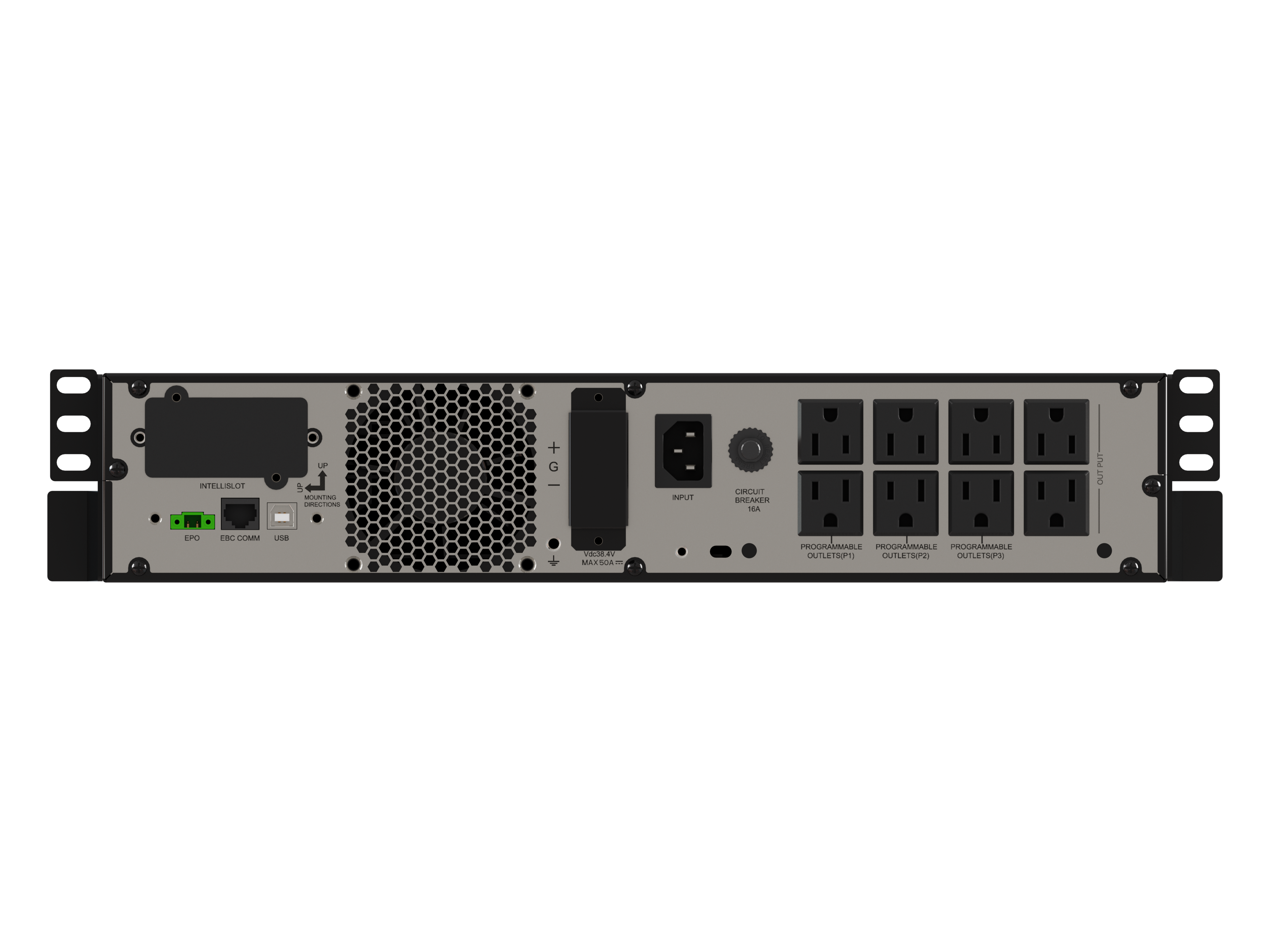 The Vertiv™ Liebert® PSI5-1500SRT2UXLIN is a 1500VA/1350W short-depth lithium-ion UPS delivering reliable power protection for edge and distributed IT environments. With a chassis under 12 inches deep, it offers high power density in a compact 2U rack/tower convertible design. This UPS features a gravity-sensing graphical LCD display for easy setup and real-time system monitoring, plus three programmable outlet segments to reboot unresponsive devices or prioritize critical loads, and an included network management card for remote monitoring, management and firmware updates. The extended run capability supports up to five external lithium-ion battery cabinets, providing flexible runtime expansion without oversizing your power solution. Its lithium-ion battery technology lasts up to 3 times longer than traditional VRLA batteries, recharges faster, and performs better in higher temperatures—reducing maintenance and total cost of ownership. Perfect for wall-mount, 2-Post, or 4-Post rack installations where space is at a premium.