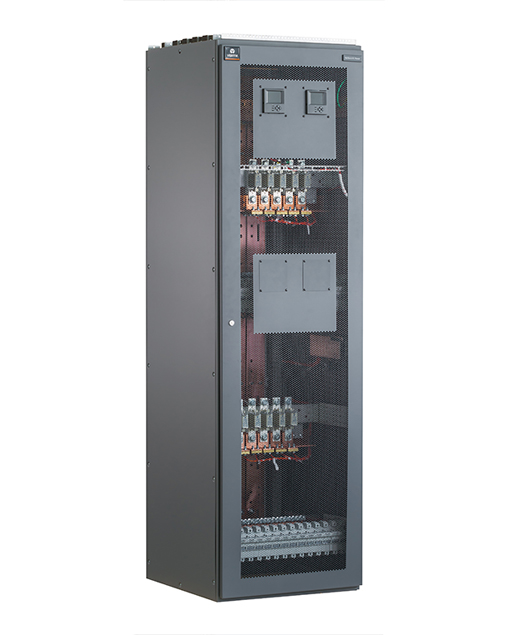 The NetSure Advanced Remote Disctribution Cabinet is designed to be very quick and safe to work with during live operation. It supports up to 2000A per cabinet and can host 6 distribution units with bullet type circuit breakers or cartridge fuses.