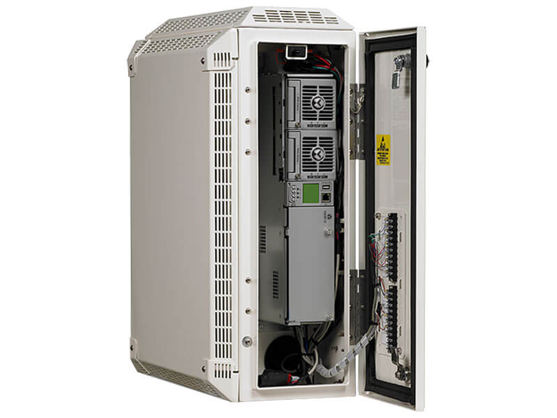 Integrated Netsure 502 DC power delivering up to 2325 watts of power designed to fully power multiple remote radio heads Supports Ethernet and SNMP communication protocol Pole, pad, H-Frame or wall mounted Optional solar shields for high temperature applications Accomodates 48V strings of Ni-Cd or VRLA batteries
