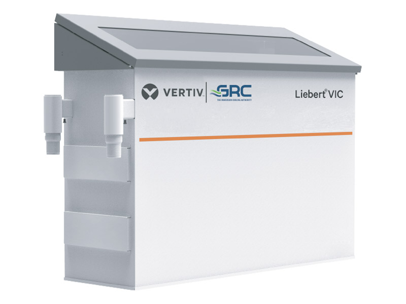 Liebert VIC solution is empowering the full computing potential with immersion cooling technology; where, servers are installed vertically in horizontal racks filled with a dielectric coolant, which is an excellent conductor of heat, but not of electricity. The coolant circulates between the racks and a coolant distribution unit (CDU) connected to a warm water loop, which may use a cooling tower or dry cooler, or a chiller return line, as the final form of heat removal.