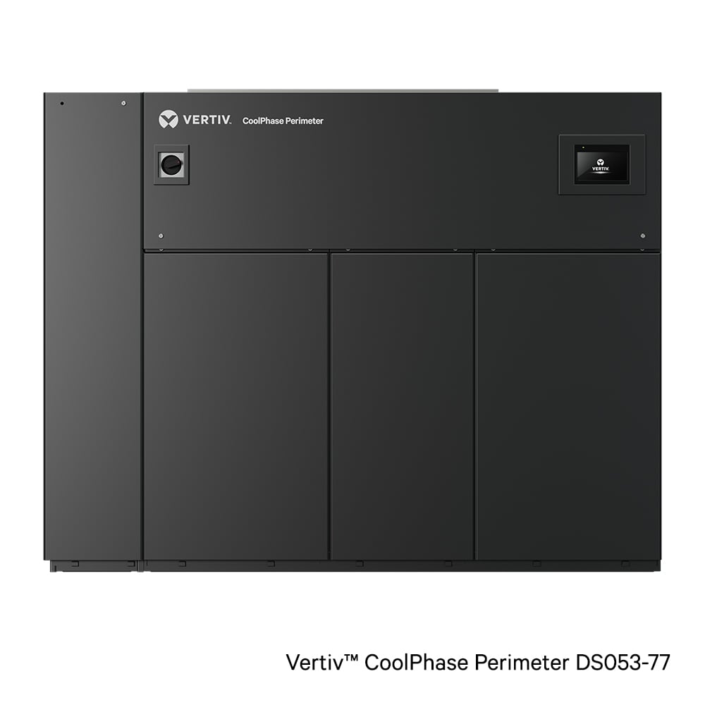 Vertiv™ CoolPhase Perimeter data center cooling system provides efficient, precise, reliable control of room temperature, humidity and airflow. The flexible unit offers high energy efficiency, user-friendly Vertiv™ Liebert® iCOM™ unit controls, a modular frame, front service access, and multiple compressor and fan options. Vertiv™ CoolPhase Perimeter is offered in both upflow and downflow models from 35-105kW (10-30 tons) capacities. Cooling types include air, water/glycol, and GLYCOOL™.