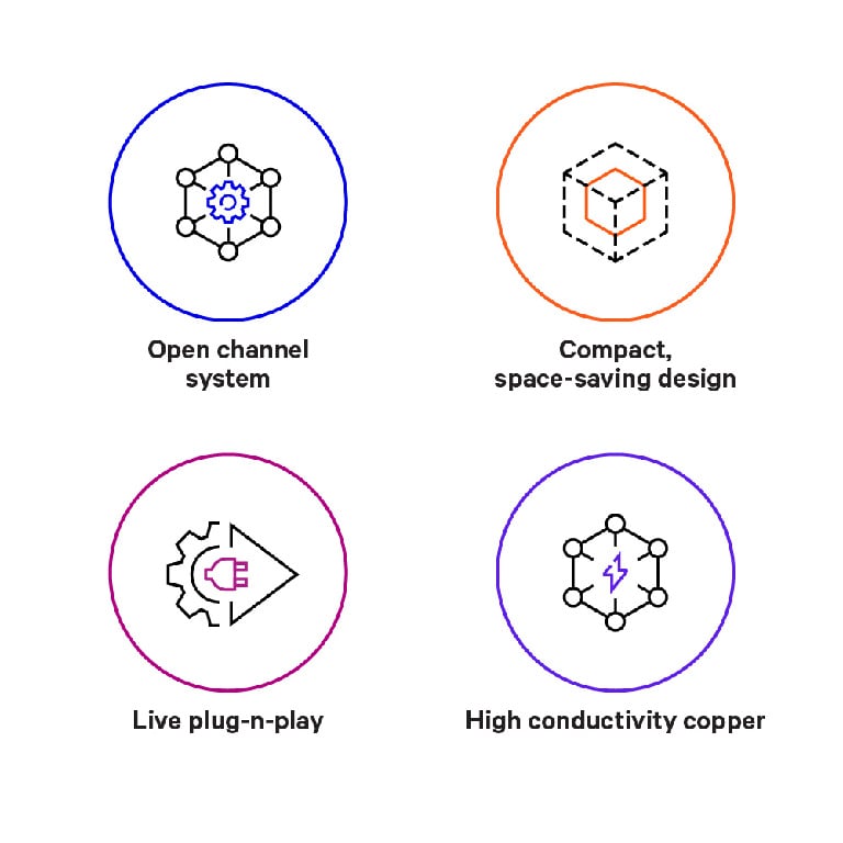 - HOT-SWAPPABLE, TAP-OFF BOXES: These are IP2X-certified for safe installation anywhere along the busway, maximizing flexibility, safety, and return on investment.