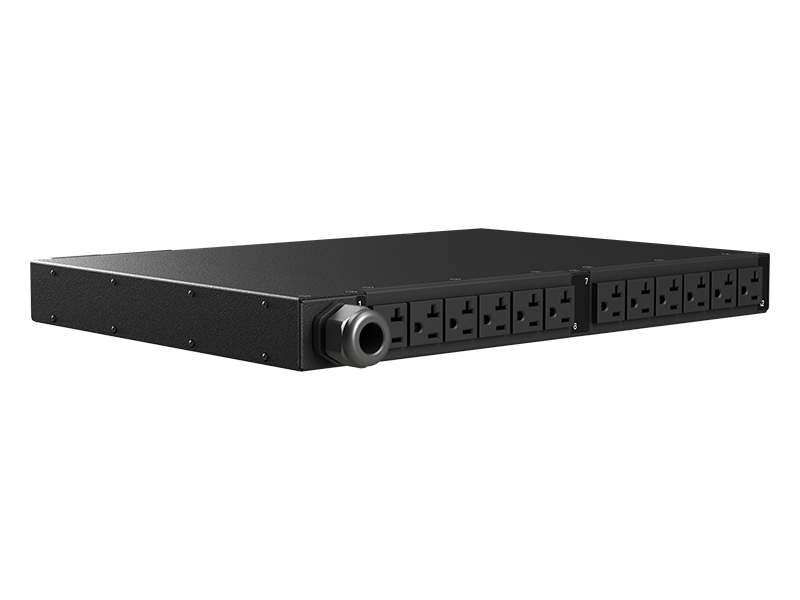 Switched Unit Level Monitored Rack PDU VP5N21A1 is a 20A, 120V 1U horizontal with input power monitoring and outlet level switching. It has 12 NEMA 5-20R receptacles and a NEMA L5-20P providing 1.9kW of power capacity. A Switched rPDU allows you to turn off outlets to avoid accidental overloads and remotely power cycle equipment to reboot unresponsive equipment. The unit is equipped with an environmental sensor port and dual ethernet ports for IP aggregation.
