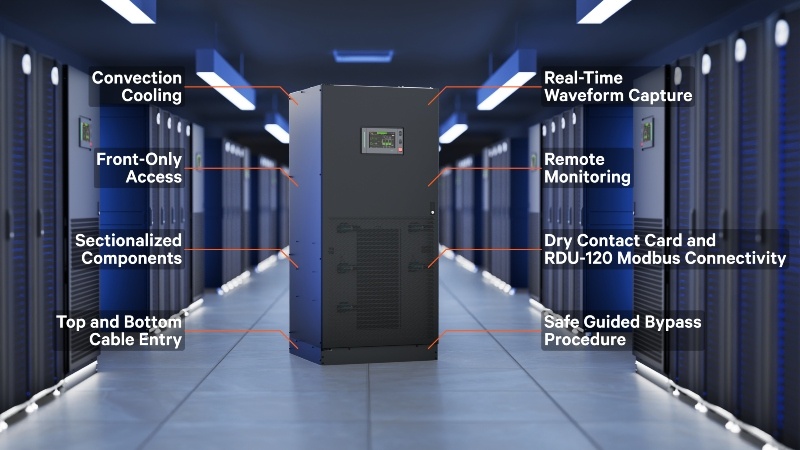- REMOTE MONITORING & COMMUNICATIONS OPTIONS: Get intelligent, real-time remote monitoring and event diagnosis through the RDU120 communications card (Modbus TCP, SNMP, BACnet IP).
