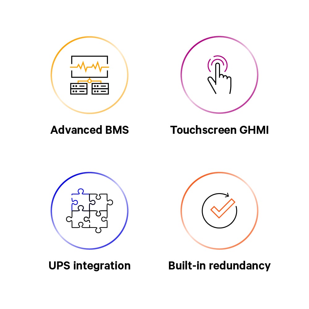 - TOUCHSCREEN GHMI: It provides simple battery cabinet and system-level visibility.