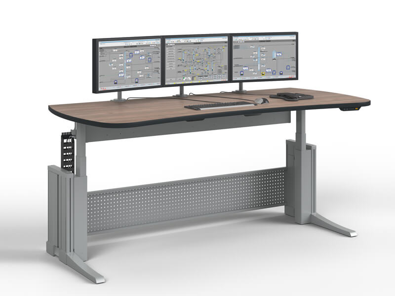 Knürr Elicon® VC/VC-E - Height-selectable and electrically height adjustable consoles for best ergonomics and operator efficency. The modular design allows a wide range of configurations and ensures maximum flexibility. Console elements can be retrofitted and upgraded at any time to stay future-proof. High-quality materials like aluminum die-cast profiles guarantee maximum stability and durability.