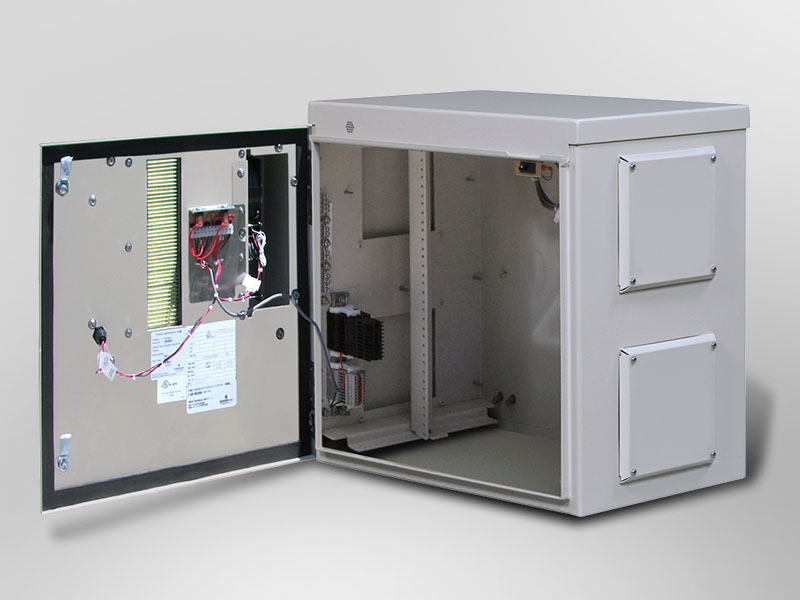Designed to discretely house DC power equipment, electronics and batteries in a single robust enclosure. The Vertiv XTE 401 Series is a family of three small single-sided low-cost indoor or outdoor rated aluminum enclosures. These enclosures can be equipped with a variety of inexpensive cooling, power, protection and battery options.