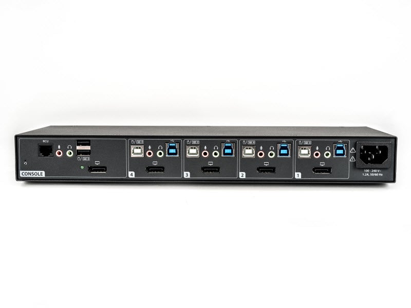 Mobile High-Definition Link (available on 4-port HDMI models) enables viewing of media from mobile devices on connected HDMI monitors Support for DVI-I, HDMI 1.4 and DP1.2 in single and dual head models supporting high resolutions up to UHD 4K Mouse and keyboard switching via emulation assures zero delay in switching time between connected sources Easily switch audio and USB 3.0 (select models) peripherals independently of KVM Three USB 3.0 ports on the front of the 240 KVMs enable easy connectivity to external USB devices, quick data transfer and high speed charging of mobile devices