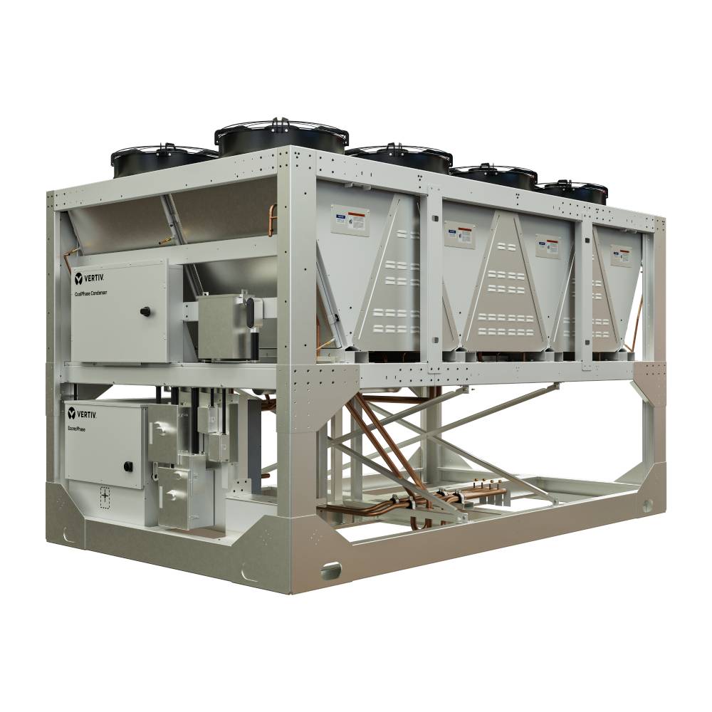 The Vertiv™ CoolPhase Condenser is an outdoor air-cooled condenser that provides higher efficiency, while using less refrigerant. Features such as variable speed fans, advanced controls and a microchannel coil make this system uniquely innovative.