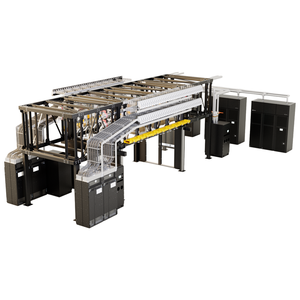 The Vertiv™ SmartRun is a prefabricated overhead IT infrastructure system designed for end-to-end speed and simplicity. It integrates high-density power distribution, liquid cooling, networking and containment infrastructure in an all-in-one deliverable platform. High-speed assemblies at Vertiv manufacturing locations worldwide reduce complexity and accelerate deployment time onsite up to 85% faster than traditional stick build methods. It is modular, scalable and configurable to various customer design points, making project deployment at scale with ease.