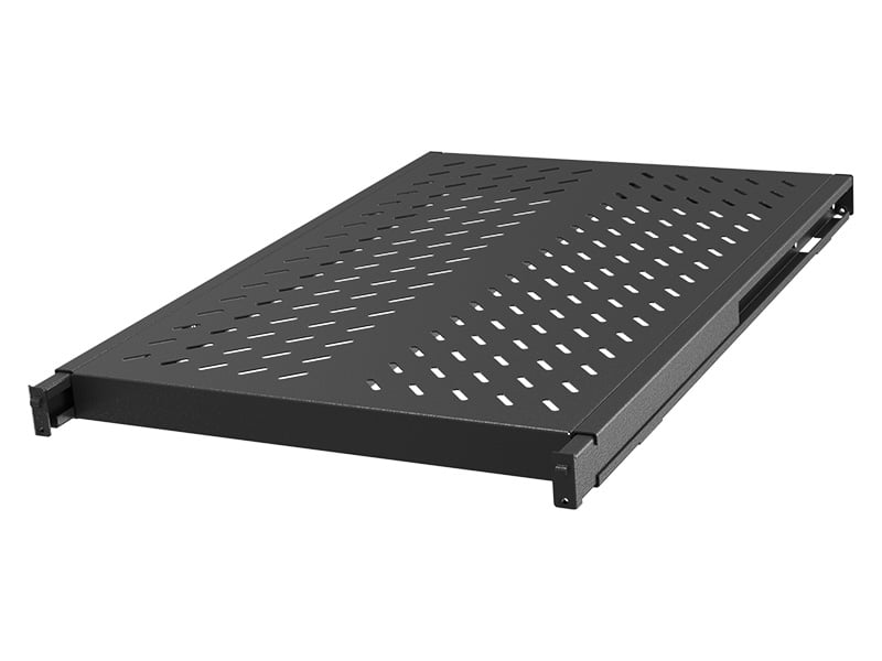 Available in 8 standard sizes Full depth adjustability of the 19” rails Doors that have 77% perforation and can be hinged on either side Two dual purpose full height depth adjustable PDU / cable management brackets mounted in the zero U space with tool-less button mounting of rack 42U frame height that allows for the rack to pass through standard doors on casters Simple external baying, allows for metric baying or on 24” center Split side panels with single locking slam latch allows for simple removal / installation