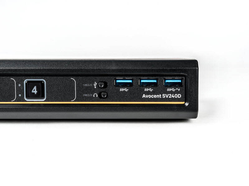 Mobile High-Definition Link (available on 4-port HDMI models) enables viewing of media from mobile devices on connected HDMI monitors Support for DVI-I, HDMI 1.4 and DP1.2 in single and dual head models supporting high resolutions up to UHD 4K Mouse and keyboard switching via emulation assures zero delay in switching time between connected sources Easily switch audio and USB 3.0 (select models) peripherals independently of KVM Three USB 3.0 ports on the front of the 240 KVMs enable easy connectivity to external USB devices, quick data transfer and high speed charging of mobile devices
