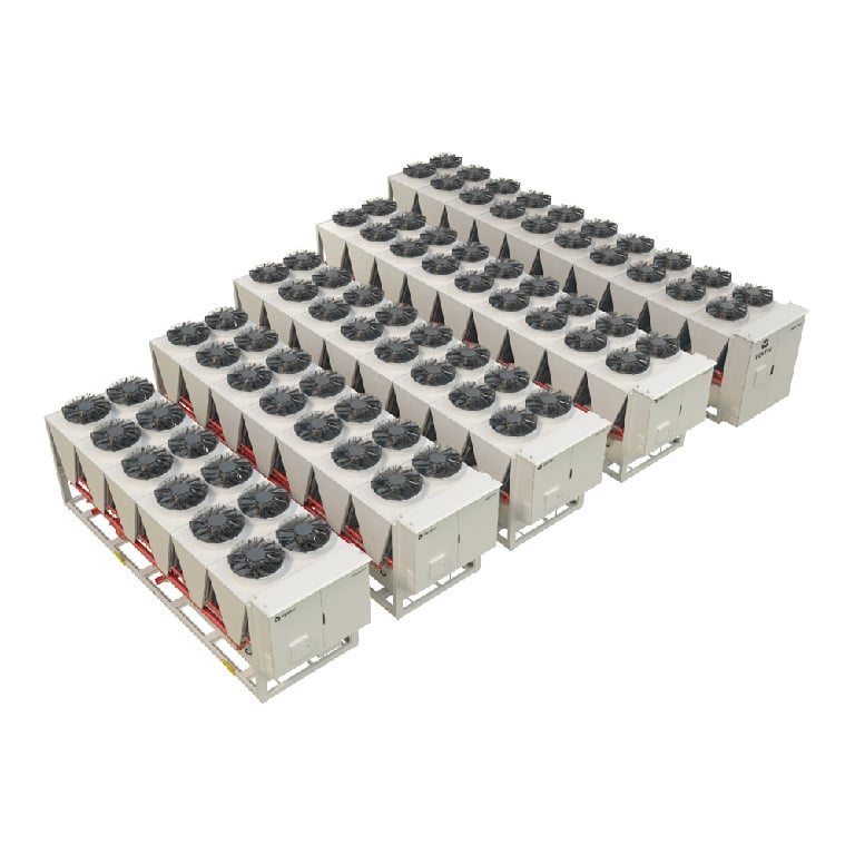 The Vertiv™ Liebert® AFC is a high-end air-cooled free cooling chiller specifically designed for efficient and reliable thermal management of data centers. Utilizing a new low-GWP refrigerant and inverter screw technology, it offers an innovative solution that aims to drastically reduce direct and indirect CO₂ emissions into the atmosphere and limit the carbon footprint of the data center.