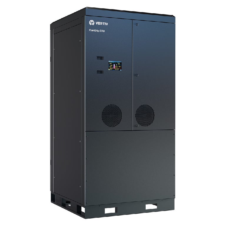 The Vertiv™ CoolChip CDU is designed to support liquid cooling within high density environments. It is suitable for direct-to-chip and rear door cooling applications that offer easy, cost-effective deployment in any data center. The Vertiv CoolChip CDU family has models that operate with and without access to facility water, allowing you to tap into the benefits of liquid-cooled servers to more efficiently support higher rack densities. Select between in-rack, in-row, or perimeter-based designs as well as liquid-to-liquid or liquid-to-air heat exchangers.