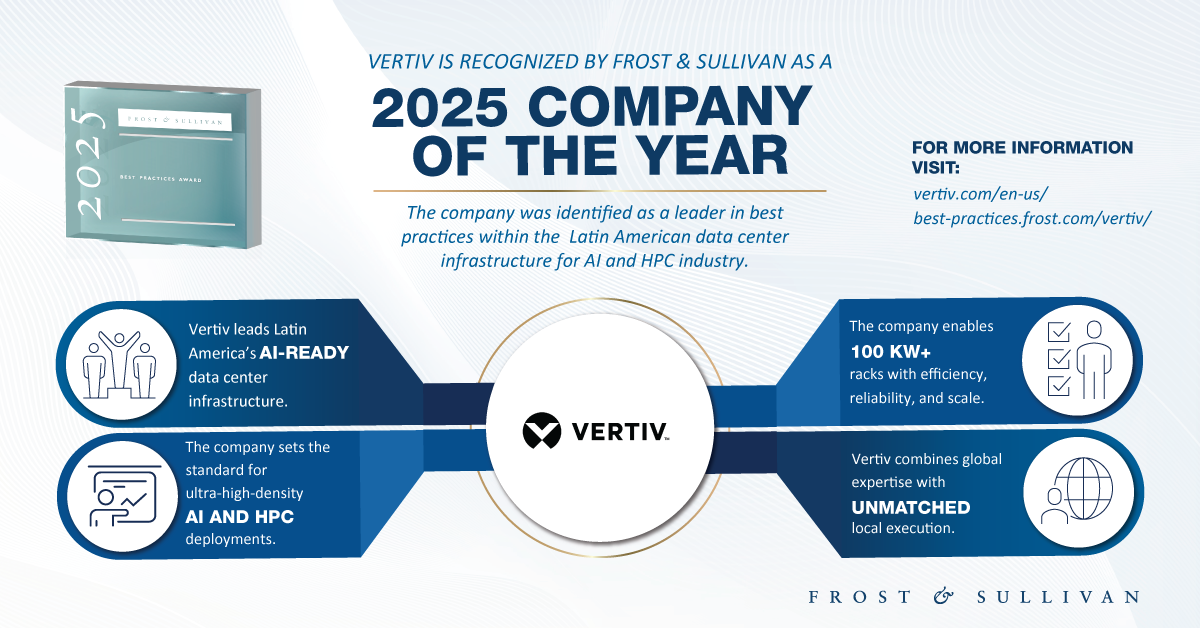 Sao Paulo, Brasil. [March 11, 2026] – Vertiv (NYSE: VRT), a global provider of critical digital infrastructure, announced today that it has been named Latin American data center infrastructure for AI and HPC Company of the year 2025 by Frost & Sullivan, as part of its Best Practices awards program.