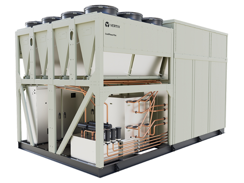 The Vertiv™ CoolPhase Flex is the industry’s first packaged system offering liquid and air cooling for modern data centers.