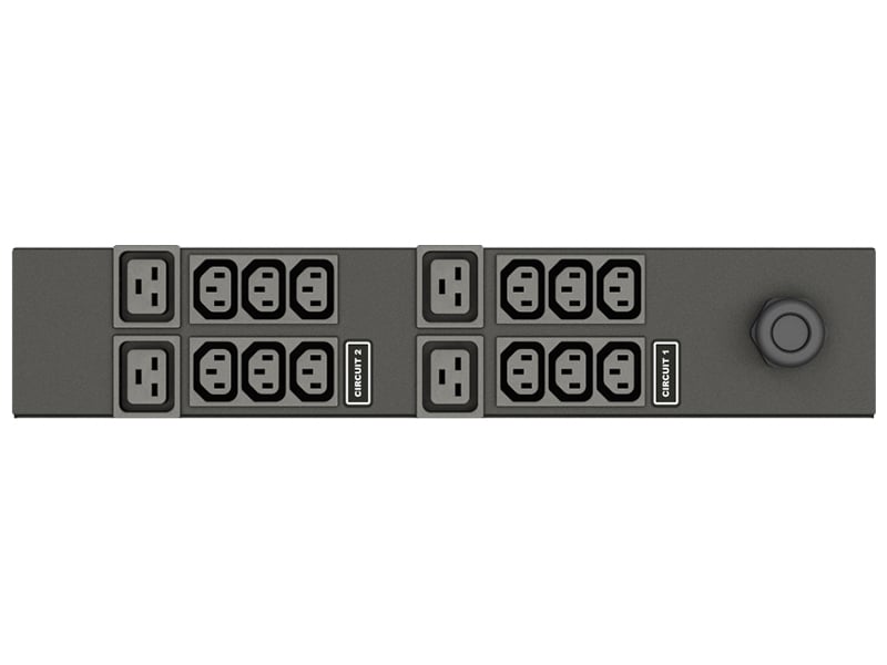 Unit Level Monitored Rack Power Distribution Unit VP4N32A0 is a 30A, 208V 2U horizontal with input power monitoring. It has 12 IEC C13 and 4 IEC C19 receptacles and a NEMA L6-30P providing 4.9 kW of power capacity. The unit is equipped with an environmental sensor port and dual ethernet ports to simplify management of multiple rPDUs with fault-tolerant daisy chaining or IP aggregation capabilities.