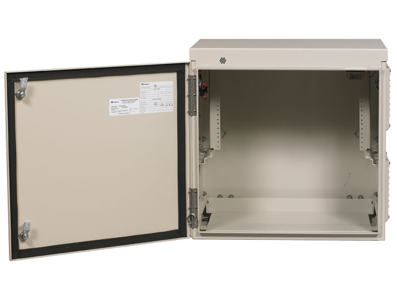 Designed to discretely house DC power equipment, electronics and batteries in a single robust enclosure. The Vertiv XTE 401 Series is a family of three small single-sided low-cost indoor or outdoor rated aluminum enclosures. These enclosures can be equipped with a variety of inexpensive cooling, power, protection and battery options.