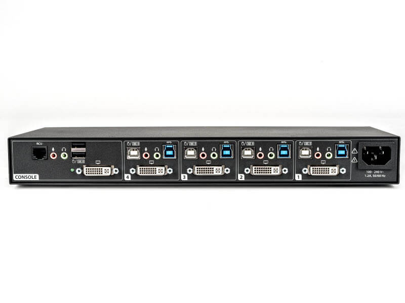Mobile High-Definition Link (available on 4-port HDMI models) enables viewing of media from mobile devices on connected HDMI monitors Support for DVI-I, HDMI 1.4 and DP1.2 in single and dual head models supporting high resolutions up to UHD 4K Mouse and keyboard switching via emulation assures zero delay in switching time between connected sources Easily switch audio and USB 3.0 (select models) peripherals independently of KVM Three USB 3.0 ports on the front of the 240 KVMs enable easy connectivity to external USB devices, quick data transfer and high speed charging of mobile devices