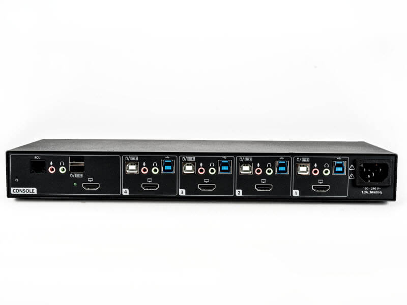 Mobile High-Definition Link (available on 4-port HDMI models) enables viewing of media from mobile devices on connected HDMI monitors Support for DVI-I, HDMI 1.4 and DP1.2 in single and dual head models supporting high resolutions up to UHD 4K Mouse and keyboard switching via emulation assures zero delay in switching time between connected sources Easily switch audio and USB 3.0 (select models) peripherals independently of KVM Three USB 3.0 ports on the front of the 240 KVMs enable easy connectivity to external USB devices, quick data transfer and high speed charging of mobile devices