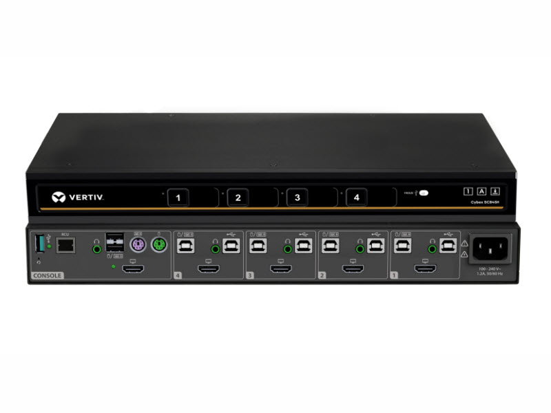 The Cybex™ SC845H secure desktop KVM is designed to meet the stringent specifications of the U.S. government and certified to the NIAP / Common Criteria protection profile for peripheral sharing switches version 3.0.
