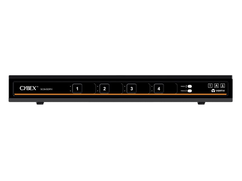The Cybex™ SC800 DPH DPHC and DVI-D series secure desktop KVM switching portfolio eliminates redundant peripherals and reduces desktop clutter. This single head secure switch gives users access up to four computers using a single keyboard, monitor, and mouse. It comes with either a DVI-D or Universal Video Connector and provides the flexibility users need in managing content from multiple computers. The DPHC models come standard with one USB-C computer connector and three traditional KVM computer connectors.