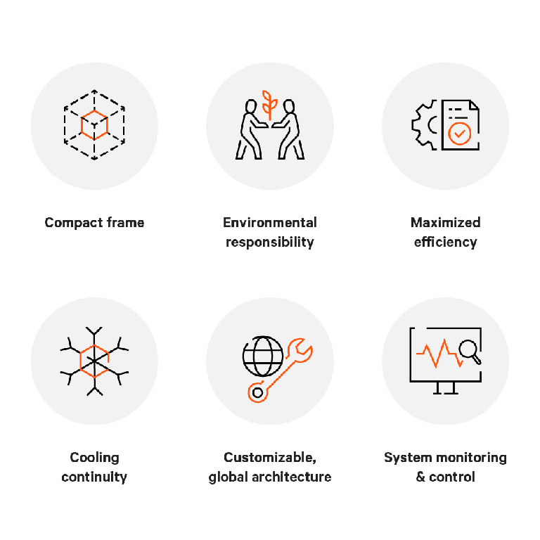 - ENLARGED CAPACITY IN A COMPACT FOOTPRINT: It delivers up to 2200kW in a single compact frame, available in chiller, free cooling, and glycol-free variants, to reduce footprint and meet high cooling demands.