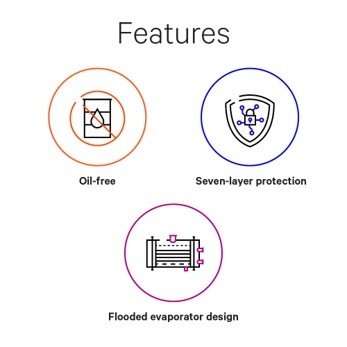 - OIL-FREE & FRICTIONLESS MAGNETIC LEVITATION COMPRESSORS: Oil-free, zero-friction design for enhanced reliability and long-lasting performance operating with R134a refrigerant.