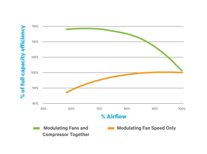 • Offers energy efficient variable speed EC fans on downflow configurations