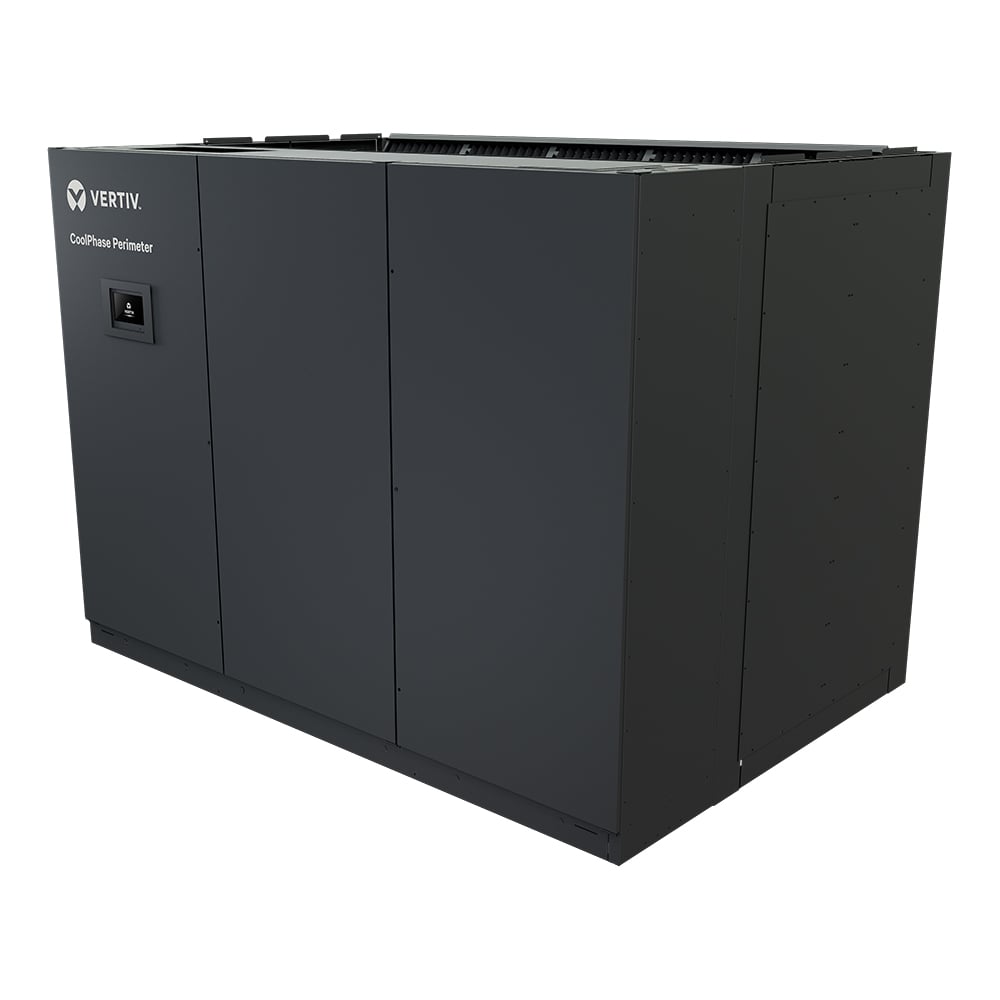The Vertiv™ CoolPhase Perimeter free cooling system, the next generation of the Liebert® DSE, provides high efficiency, economization, maximum reliability, low maintenance and rapid scalability – all in highly flexible split-system configurations ranging from 50kW to 265kW. The pumped refrigerant economizer captures the most economization hours across the widest range of temperatures, compared to other similar systems. The system provides split-system refrigerant economization with more than two dozens configurations for airflow, form factor and capacity, and now comes with low GWP refrigerant options. It can be deployed in perimeter, gallery and full-face discharge applications for raised floor and non-raised floor data centers. The system’s pumped refrigerant technology separates outside air from data center air to eliminate cross-contamination or humidity transfer. The system’s industry-leading controls capture every available economization hour, with smooth, automated transitions. Advanced protection routines keep the system operating safely within thresholds. Automatic, multi-unit teamwork modes harmonize thermal management across the data center. Optimization routines reduce energy usage by up to 50% over previous versions. Onboard protocols make integration with building management systems easy. The Vertiv™ CoolPhase Perimeter has fewer moving parts than other economizer systems, reducing the likelihood of component downtime and maintenance. All components can be serviced from the back of the unit, allowing for more flexible installation options.