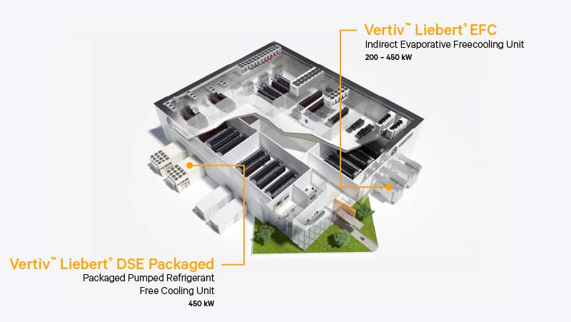 Packaged solution greatly simplyfy the work on site and Vertiv offers solution that can modulate between air and liquid cooling providing ultimate in flexibility and speed.