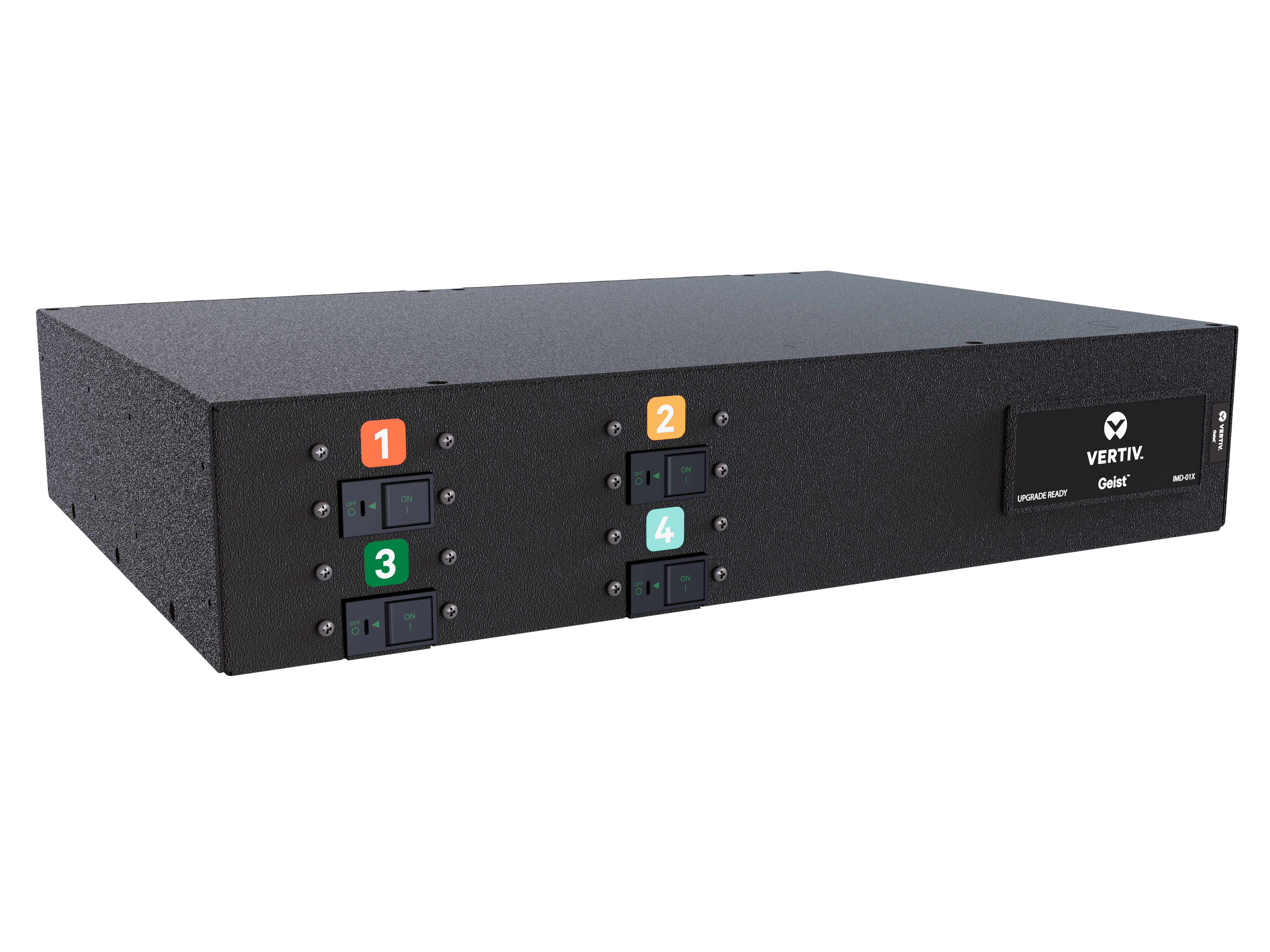 - EASY-TO-USE FRONT PANEL: The rPDU has an easy-to-use front panel that provides visual identification of the active power source for easy monitoring. It also allows users to do a manual transfer of the power source. The transfer can be done either by touch of a button or remotely, so users have options on how to manage power loads during maintenance or emergency power loss.