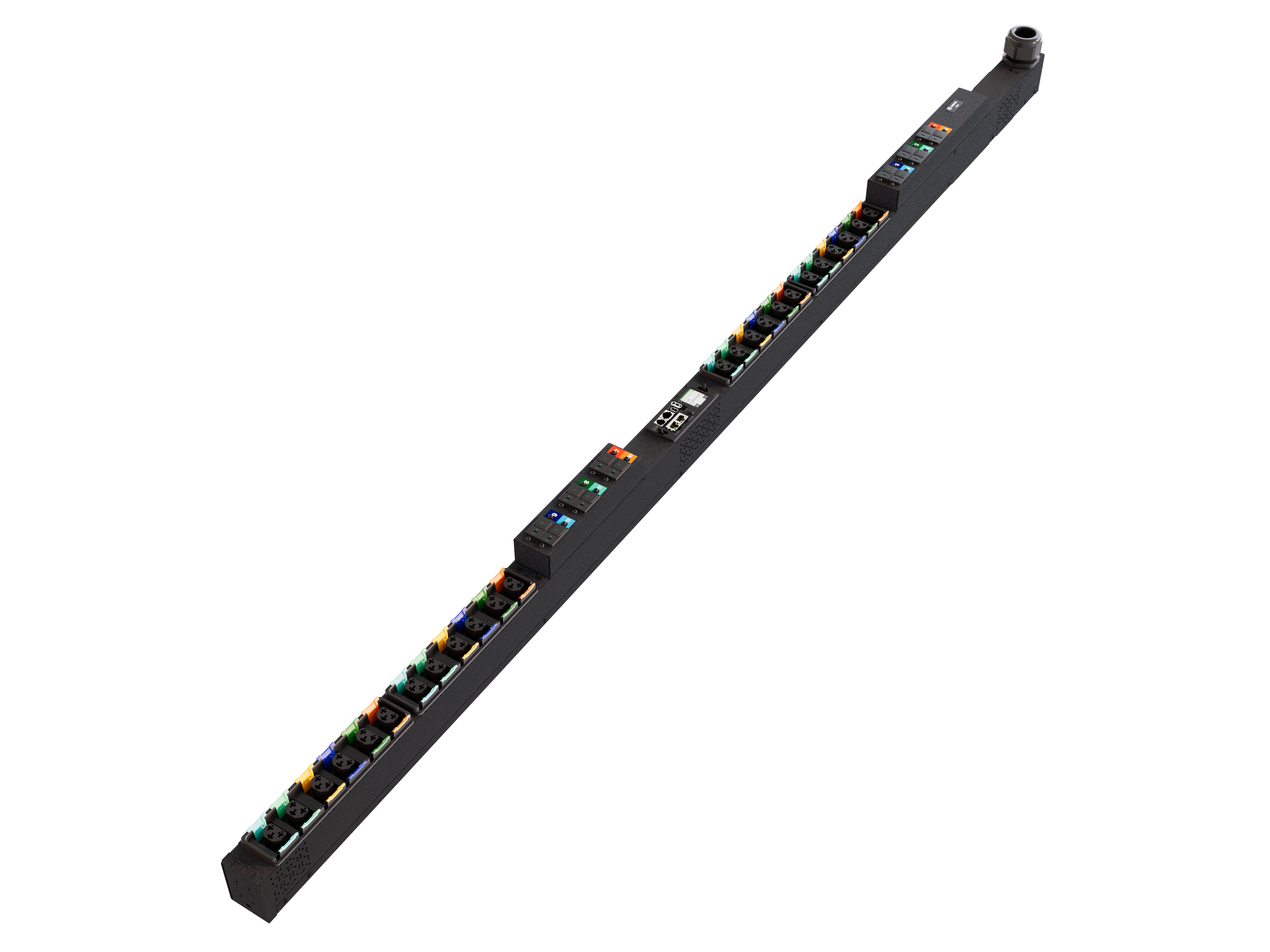 The Vertiv PowerIT Monitored Outlet Level rPDU VP6U60A3 is an upgradeable, 60/63A, 240/415V WYE, 0U, vertical rPDU with input and outlet level monitoring, 24 Combination C13/C19 outlets, and a 3P+N+E (IP44) plug with 43.4kW power capacity. It has a hot-swappable Interchangeable Monitoring Device (IMD-5M), as well as dual gigabit ethernet ports to simplify multiple-PDU management. It also has a three-year warranty extending to five years if registered within 120 days of purchase.