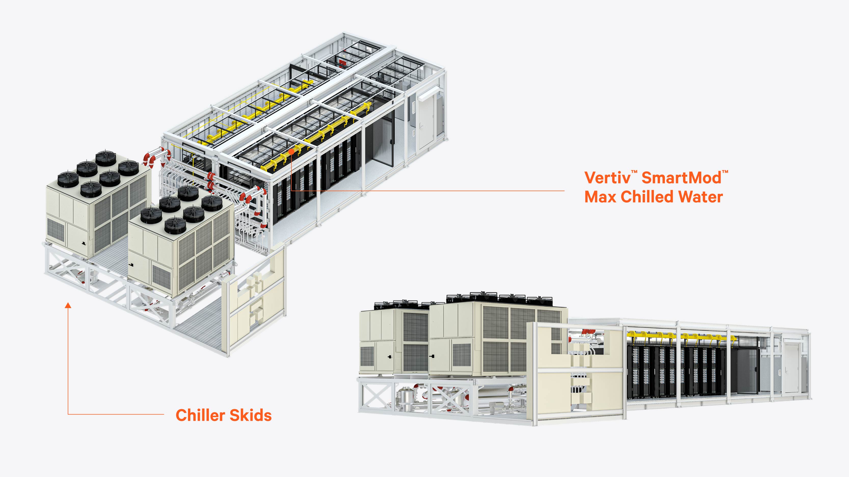 Vertiv™ SmartMod™ Max CW extends the capability of the already existing SmartMod™ platform to larger deployments. You can rapidly achieve your objectives, and you don’t have to overspend the budget or overbuild based on uncertain future needs. SmartMod™ Max CW is a two-module type of all-in-one data center that best suits IT deployments up to 210kW and up to 24 IT racks. Configured with two rows of racks, the system uses hot aisle containments to ensure optimal performance and Chilled Water as the thermal management system.