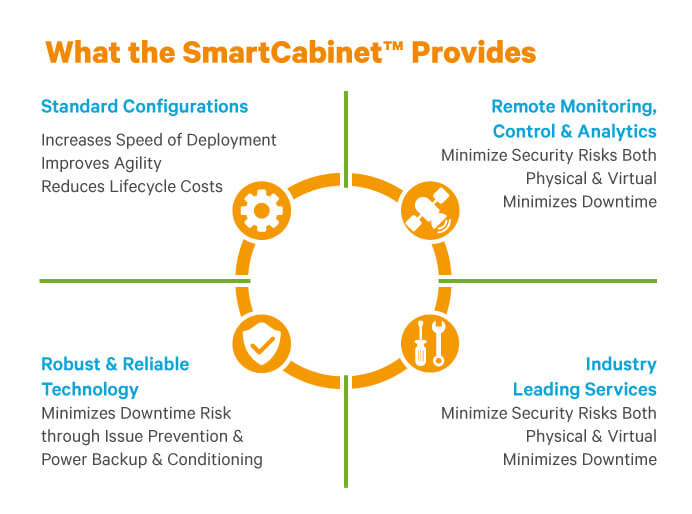 13U lockable cabinet, (10U available) POWER DISTRIBUTION: Single 3 kVA UPS 3/12 minutes run-time @ F/H load 6 total available power output 120VAC 60hz NEMA L5-30P plug (208 VAC models available) REMOTE ACCESS: 8-port Console Server / LAN/WAN/4G access CERTIFICATIONS: ANSI C63.4-2009, CFR Title 47, Part 15, Subpart B, ICES-003 Issue 5, ISTA 3B (24U Cabinet Models Only)