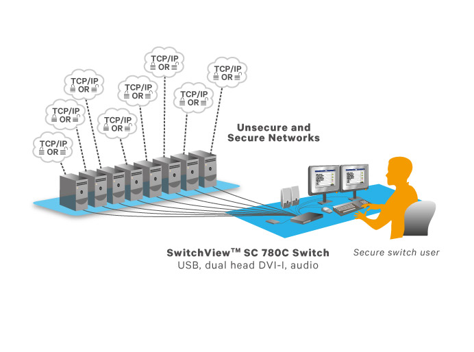 The Cybex™ SC640C secure desktop KVM is designed to meet the stringent specifications of the U.S. government and certified to assurance level EAL2+.