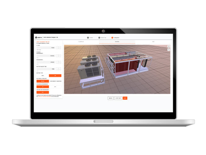 Vertiv™ Modular Designer Lite is a web-based solution tailored for configuring Vertiv™ SmartMod™ all-in-one modular data centers.