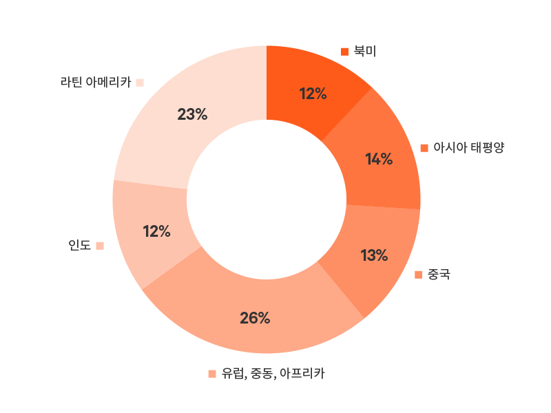 Vertiv의 엣지 배치 실태(What’s Your Edge) 글로벌 설문조사는 156명의 업계 전문가들로부터 엣지 배치 현황 및 계획에 대한 의견을 수집했습니다. 본 설문조사에서 대표되는 지역에는 아시아 태평양, 중국, 유럽, 중동 및 아프리카(EMEA), 인도, 라틴 아메리카(LATAM), 북미가 있습니다.