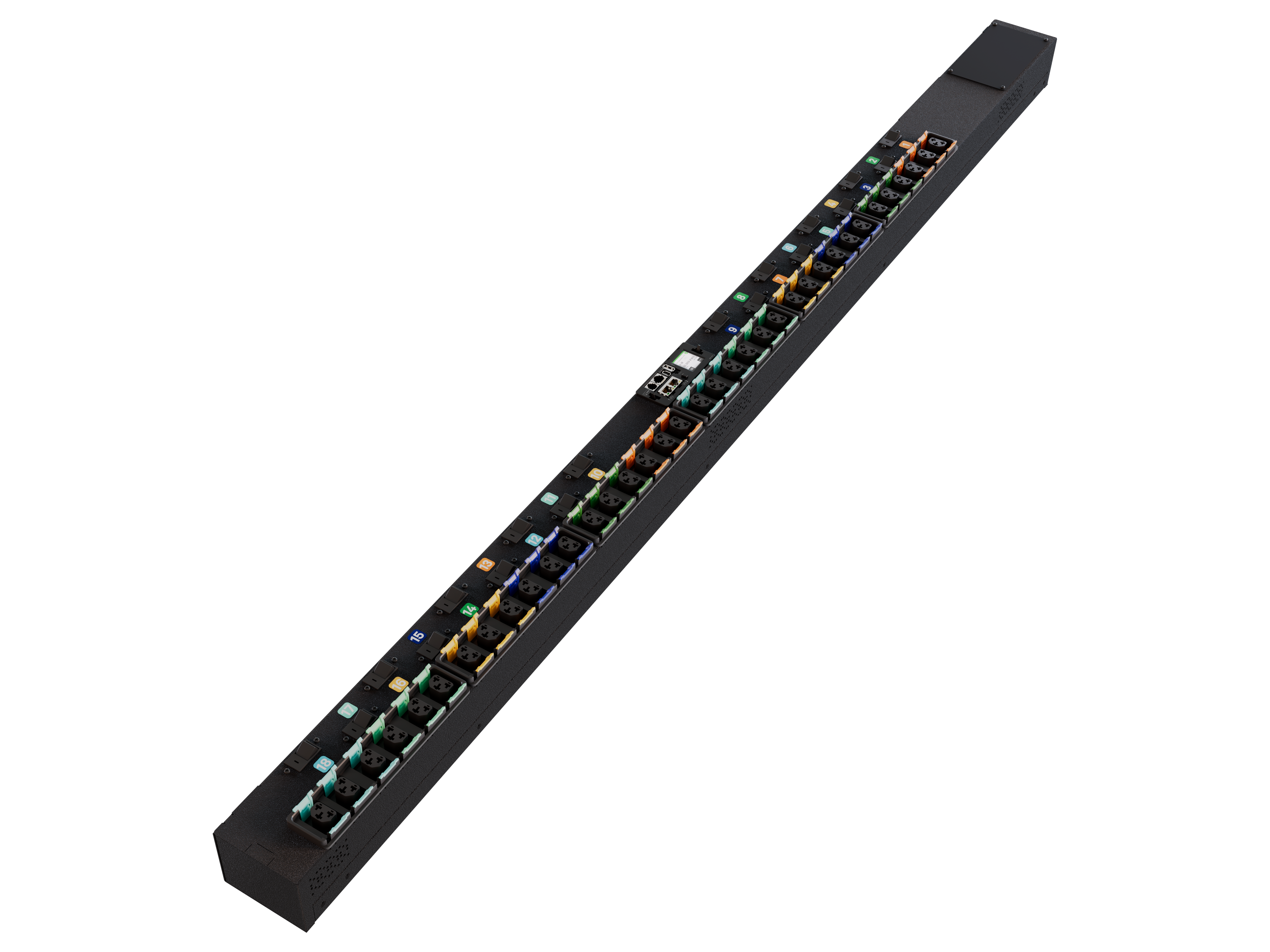 The Vertiv PowerIT Switched Outlet Level Monitored rPDU VP7UA0A0 is an upgradeable, 80A, 240/415V WYE, 0U, vertical rPDU with input monitoring and outlet level monitoring and switching, 36 Combination C13/C19 outlets, and a hardwired input plug providing 57.6kW of power capacity. This unit allows you to turn off outlets to avoid accidental overloads and remotely power cycle equipment to reboot unresponsive critical IT equipment.