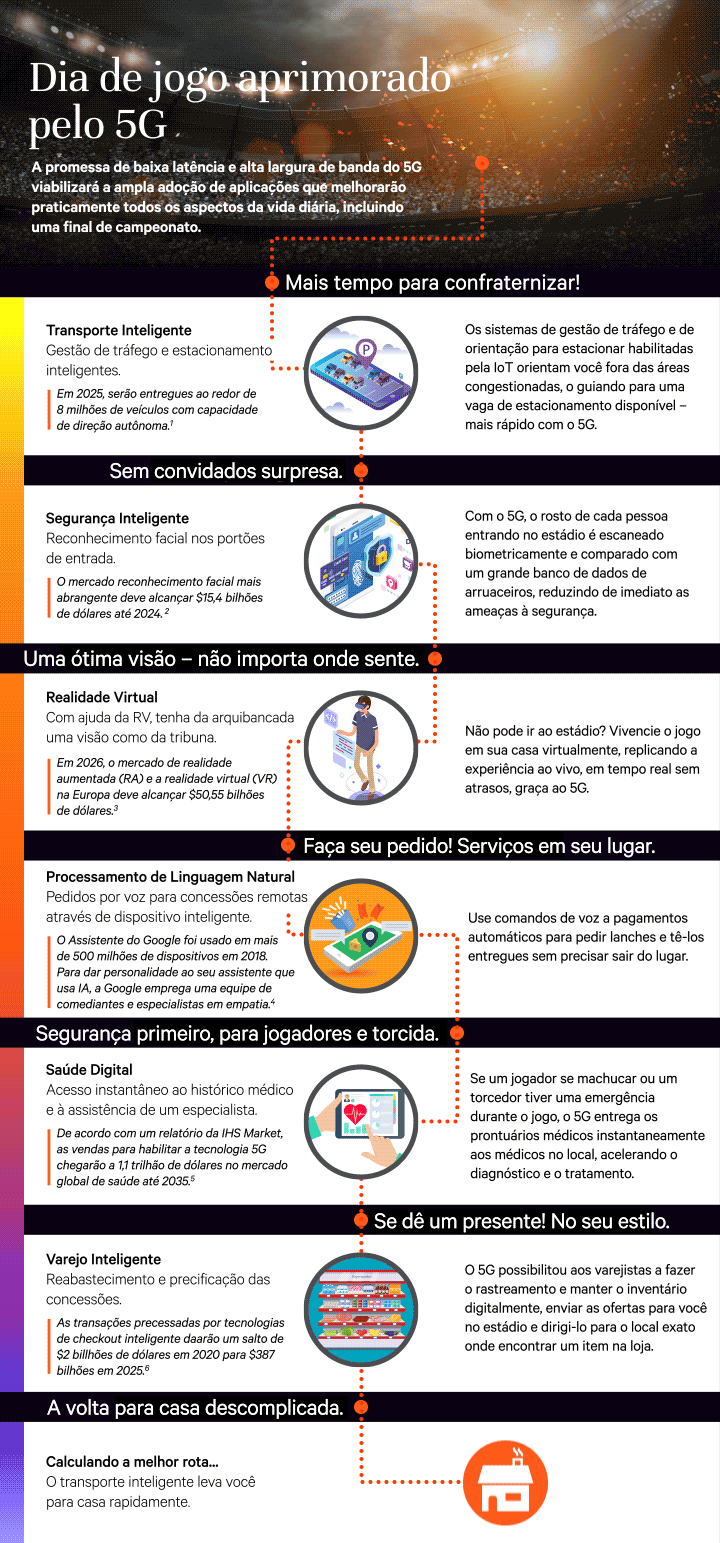 A promessa de baixa latência e alta largura de banda do 5G viabilizará a ampla adoção de aplicações que melhorarão praticamente todos os aspectos da vida diária, incluindo um grande jogo.