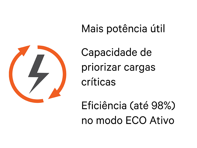 - Até 98% no modo ECO Ativo; até 95% no modo on-line