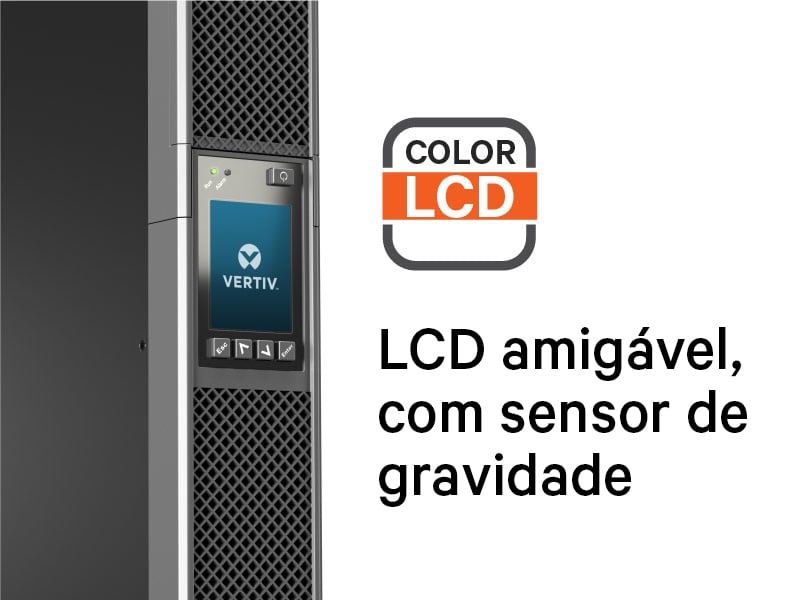 O UPS Vertiv™ Liebert® GXT5 oferece uma completa variedade de UPSs monofásicos. É fácil de implementar com um design conversível de rack/torre que proporciona flexibilidade de instalação e seu LCD colorido com sensor de gravidade proporciona uma interface amigável para configuração e gerenciamento locais. O setup e as configurações também simplificam a detecção automática de gabinetes externos de baterias, proporcionando soluções de autonomia adicional. Com uma placa de rede (NIC) disponível, uma suíte de soluções de gerenciamento da Vertiv, incluindo o Trellis™ Power Insight e as ferramentas dos serviços remotos Vertiv™ LIFE™ Services, está disponível para dar suporte à sua infraestrutura crítica. Projetado para ter alta disponibilidade e capacidade, esses modelos de UPS com altos fatores de potência de saída - até a unidade - proporcionam mais potência útil em uma solução compacta, possibilitando mais potência útil para os equipamentos conectados. A operação com alta eficiência desse UPS certificado como Energy Star® 2.0 significa que você tem proteção ao mesmo tempo em que se mantém consciente sobre o uso de energia. Uma maior eficiência é também alcançada com o modo de operação ECO Ativo.