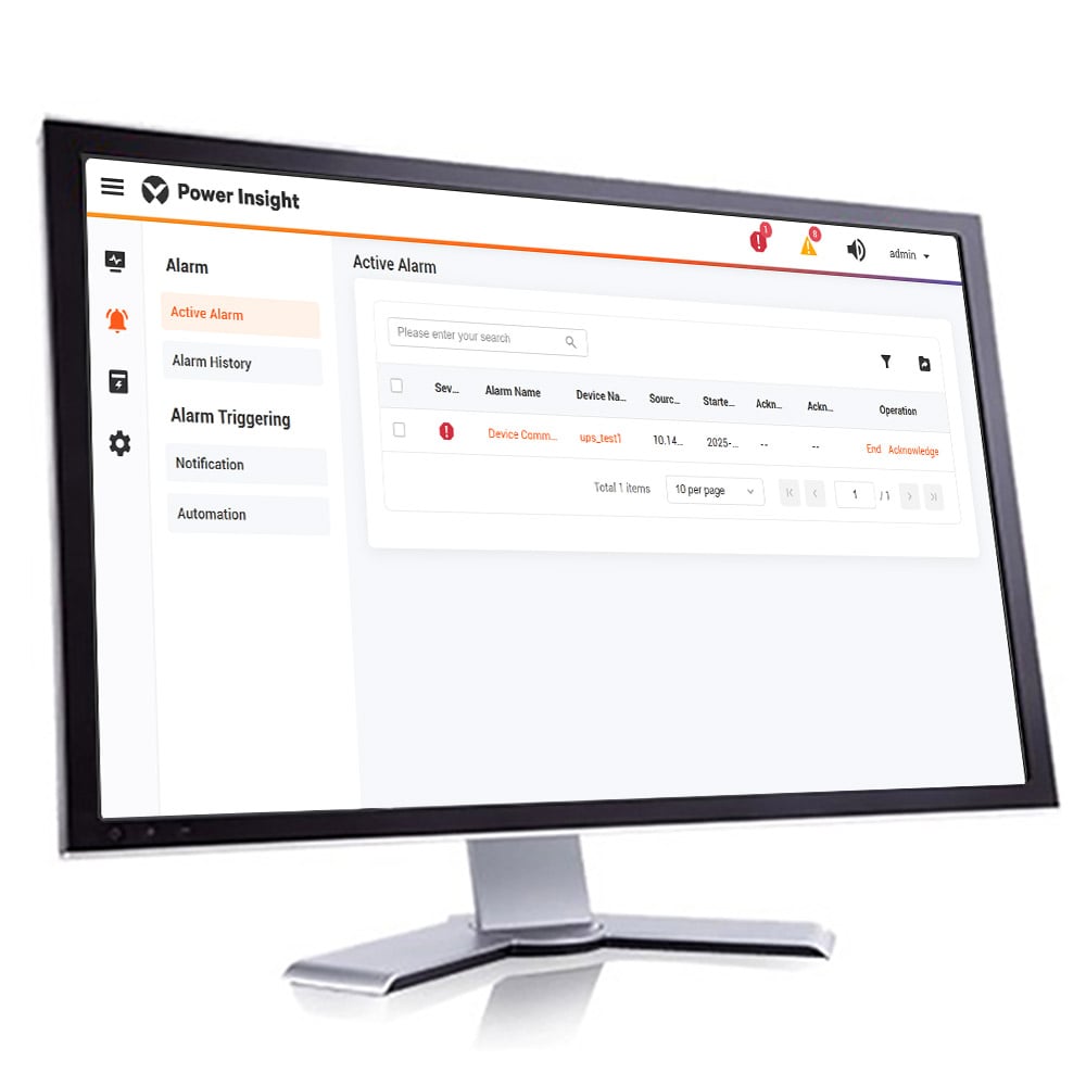 - Vertiv™ Power Insight, bağlı cihazların ömrünü uzatır ve donanım yatırımınızın değerini artırır. E-posta, SMS veya ekran üzerinden uyarılar bir sorun olduğunda sizi bilgilendirir. Kontrollü sunucu kapatması, kritik bir olay meydana geldiğinde cihazları düzgün bir şekilde kapatarak ekipman hasarını ve iş kesintilerini azaltmaya yardımcı olur. Yazılım ayrıca, cihazların manuel olarak eklenmesi ihtiyacını ortadan kaldırır ve değerli kurulum süresinden tasarruf sağlar.